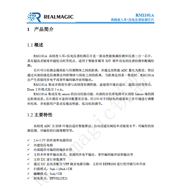 銳盟半導體的壓電感知方案集合了對于壓電微弱信號的采集,包括對相關參數(shù)的自動學習和補償、溫濕度環(huán)境自適應、自適應濾波和智能處理算法等核心技術,在電路結(jié)構(gòu)應用方面做了一定的專利保護。